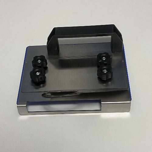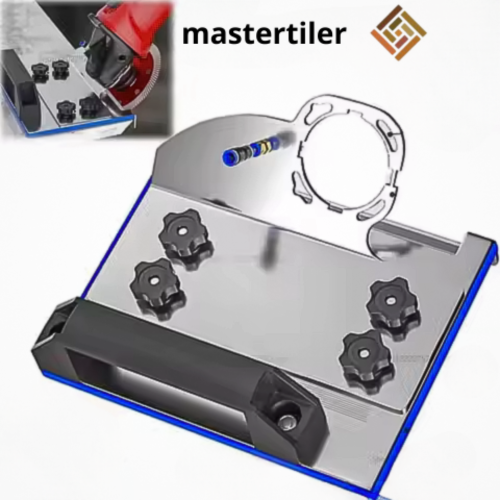 Make neat, slanted edges on tiles fast. Clip this guide onto your grinder, turn the knobs to choose the edge size, and slide it along the tile. The strong steel base helps stop chips and keeps your cut straight. Works on ceramic, porcelain, and stone. Great for DIY jobs and pros. Always wear eye and dust protection.